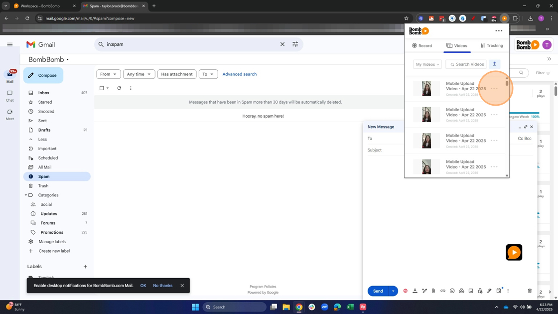 - Click the BombBomb Chrome extension icon in your browser toolbar.